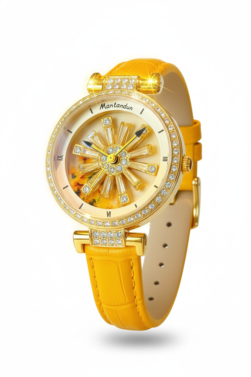 Relógio Mantandun Girassol Dourado - Cristais Genuínos